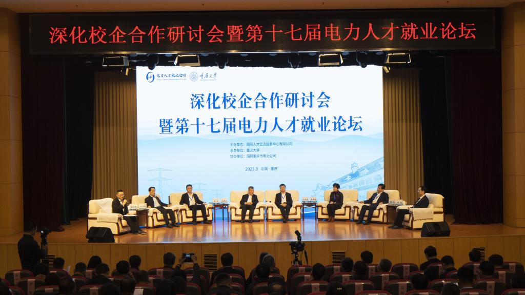 2023年3月30日,国网人才中心深化校企合作研讨会暨第十七届电力人才就业论坛在我校举行。会议由国网人才交流服务中心有限公司主办,国网重庆市电力公司协办,91黄色网站 承办,来自国网直属单位、各省公司等43家企业和清华大学、西安交通大学、华北电力等全国46所高校共两百余名代表参加本次大会。