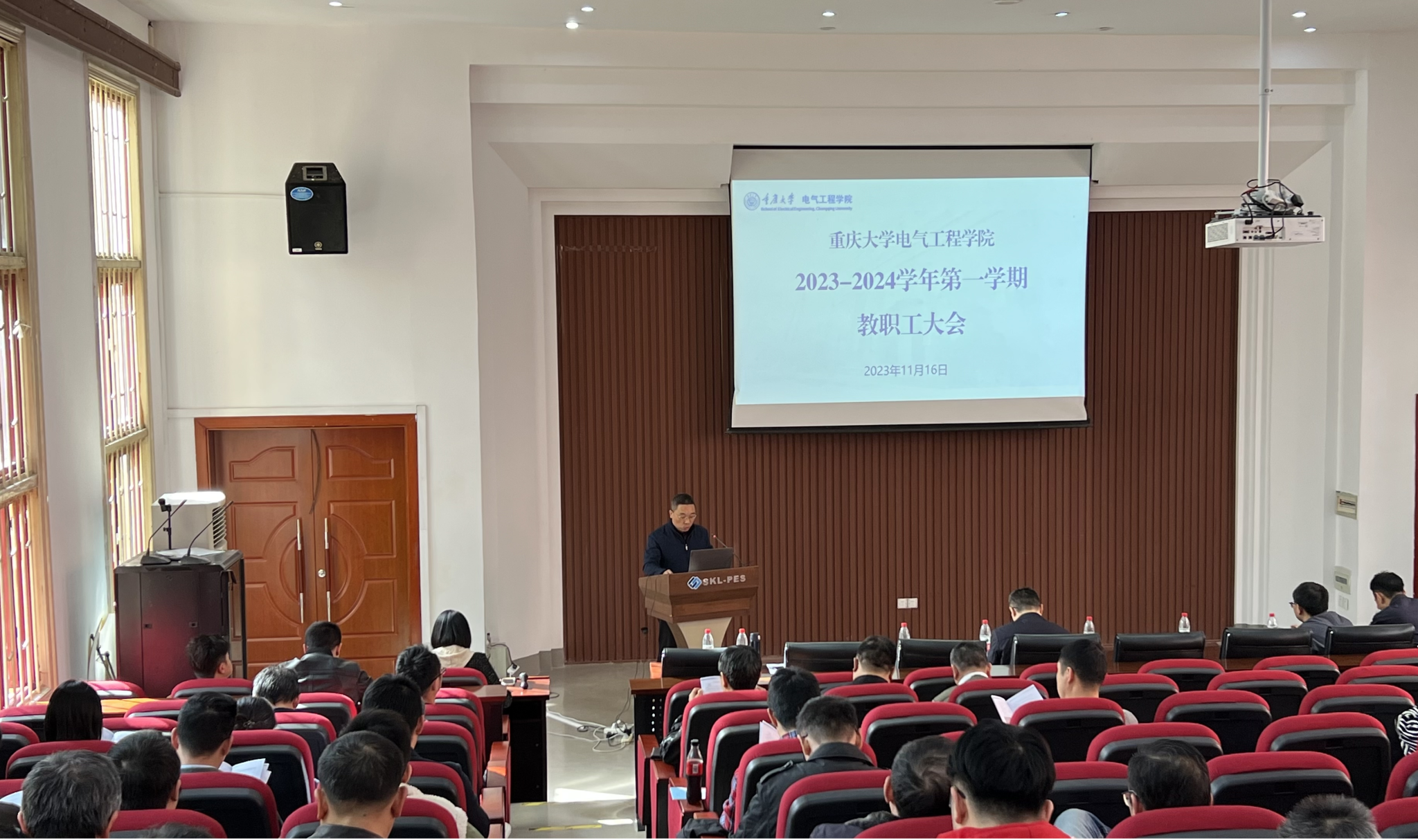 2023年11月16日下午,91黄色网站 在六教6117报告厅召开2023-2024学年第一学期第二次全体教职工大会。会议主要通报了学院党委巡视整改工作、实验室安全工作、基金申报组织工作、职称评聘政策和师德师风建设情况。学院党委书记胡建林,院长谢开贵,党委副书记王晓静、吴嘉,副院长杜雄,输变电装备技术全国重点实验室副主任李辉,国家野外科学观测研究站专职副站长张志劲出席会议。大会由王晓静副书记主持。胡建林从巡视整改...