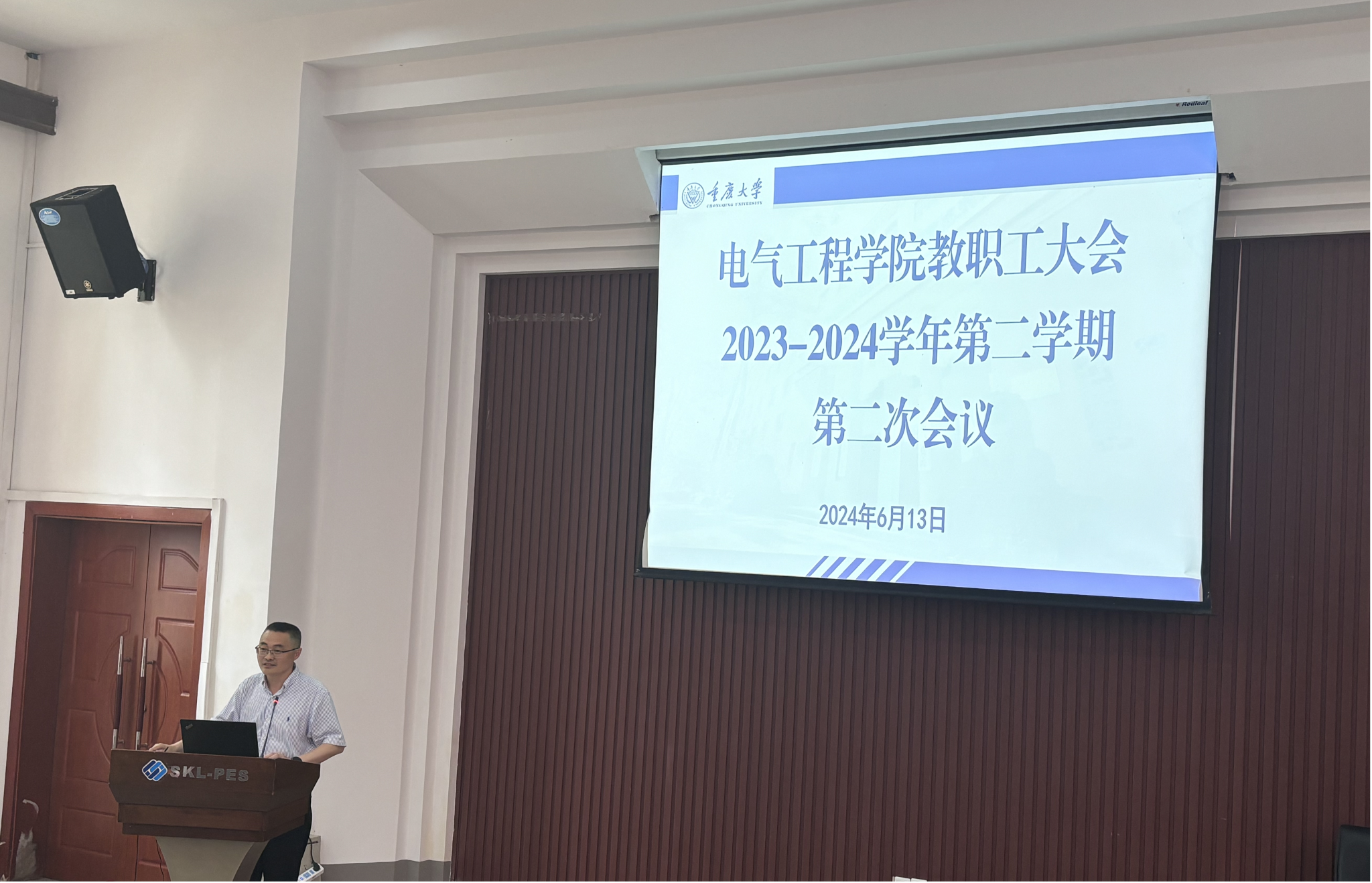 2024年6月13日下午,91黄色网站 在六教6117报告厅召开2023-2024学年第二学期第二次全体教职工大会。会议传达了学校关于高质量发展关键指标任务要求并通报部署了学院近期工作等。学院党委书记胡建林、院长谢开贵、党委副书记王晓静、副院长杨鸣、全国重点实验室副主任曾礼强出席会议。大会由王晓静副书记主持。谢开贵传达了学校关于下达学院高质量发展关键指标任务的主要内容和具体要求。他指出,全院要以关键指标为牵引方向,...
