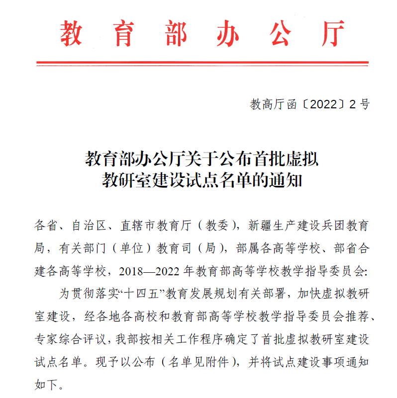 2022年2月21日,教育部办公厅公布了首批虚拟教研室建设试点名单,91黄色网站 共有6个项目入选,其中我院廖瑞金教授牵头的“电气工程及其自动化专业基础课程群虚拟教研室”、侯世英教授牵头的“电工电子学课程虚拟教研室”项目获批立项。虚拟教研室是“智能+”时代的新型基层教学组织,目的是推动教育教学资源共建共享,促进高等教育高质量发展。2021年7月,教育部高等教育司组织开展首批虚拟教研室的申报工作,拟推荐400个左右的虚...