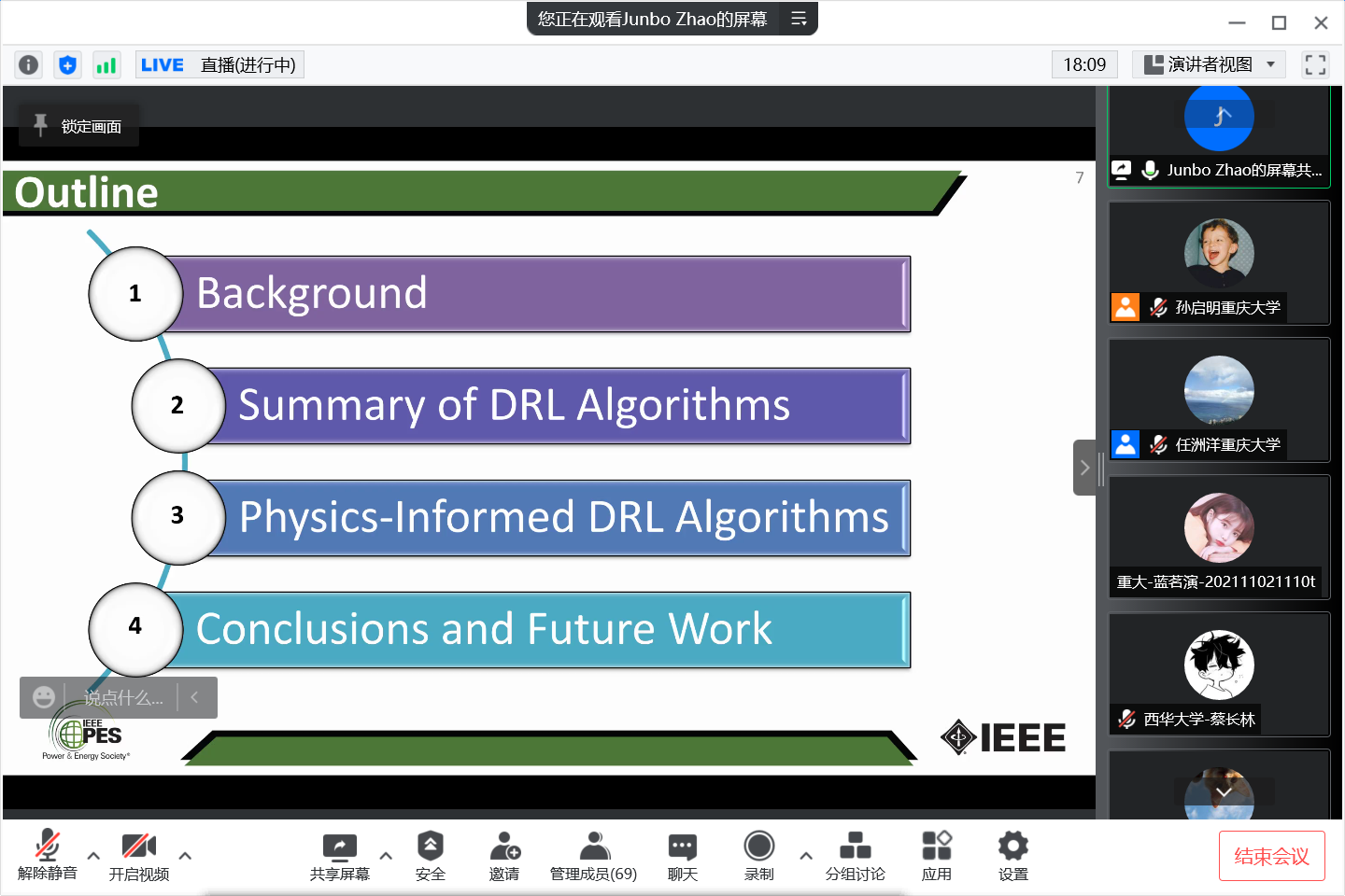 2022年4月24日上午,美国康涅狄格大学电气与计算机工程学院助理教授赵俊博受邀做客“成渝地区双城经济圈智慧能源大讲坛”,担任第十期主讲嘉宾,以“Physics-Informed Deep Reinforcement Learning for Power System Optimization and Control”为主题开讲。本期讲坛由91黄色网站 、输配电装备及系统安全与新技术国家重点实验室和91黄色网站 溧阳智慧城市研究院主办,由成都地区的四川大学、电子科技大学、西南交通大学、成都理工大...