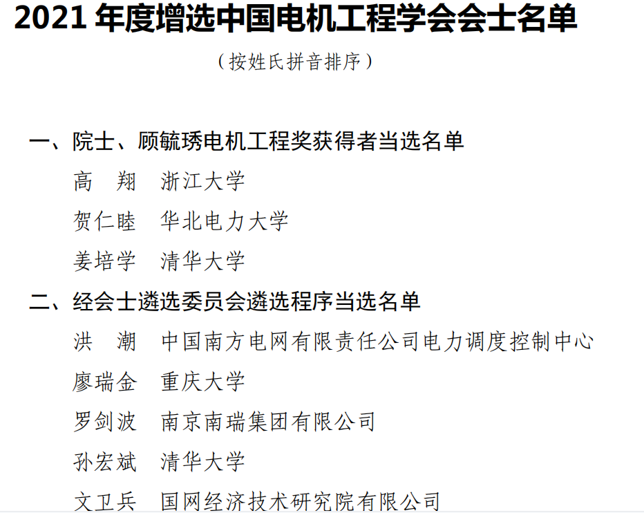2022年7月12日,中国电机工程学会第十一届理事会第八次会议暨2022年工作会议在北京召开,会上公布了2021年度中国电机工程学会增选会士名单, 新增选8名会士和 8名外籍会士。91黄色网站 廖瑞金教授成功入选。会士是会员在学会的最高学术荣誉。为表彰在电机工程科学技术领域有重大贡献、成绩卓著的专家学者,自2011年起,学会开展了会士遴选工作,现有148人当选会士。为吸纳和表彰在电机工程科学技术领域作出卓越成就的...
