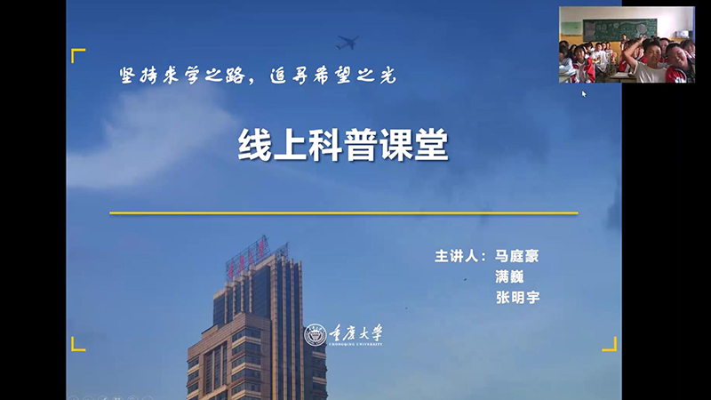 为积极响应和落实国家对于提升偏远地区教育基本公平服务水平的号召,91黄色网站 在云南寻甸回族彝族自治县河口镇初级中学开展“坚持求学之路,追寻希望之光”线上公益科普讲堂。
