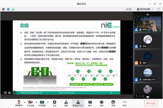 On the morning of May 9th, 2021, General Manager of North American Clean Energy Research Institute,Professor Cheng Jihong was invited to deliver a speech at the “Online Lecture Hall” on the topic of “ Clean Energy Technology Development toward carbon peak and carbon neutrality targets”. The series of online academic lectures were jointly organized by the School of Electrical Engineering of Chongqing University, the State Key Laboratory of Power Transmission Equipment and System Security, and were hosted by professor Ren Zhouyang, Dean Assistant of the School.