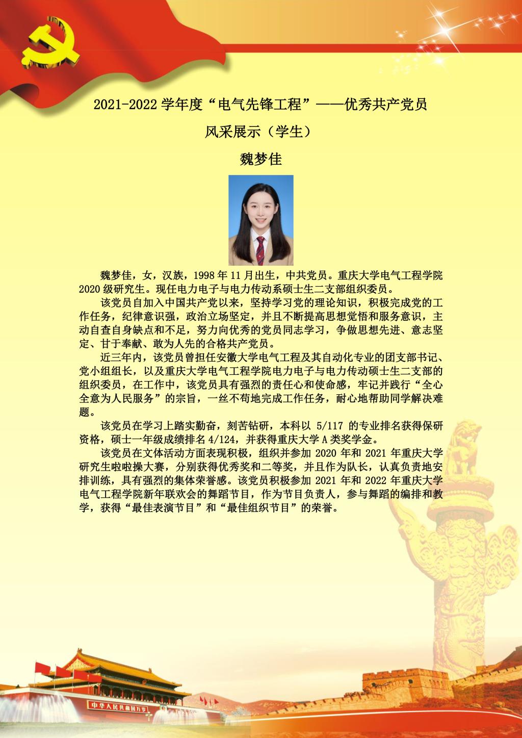 【党员风采】电力电子与电力传动系硕士生二支部魏梦佳