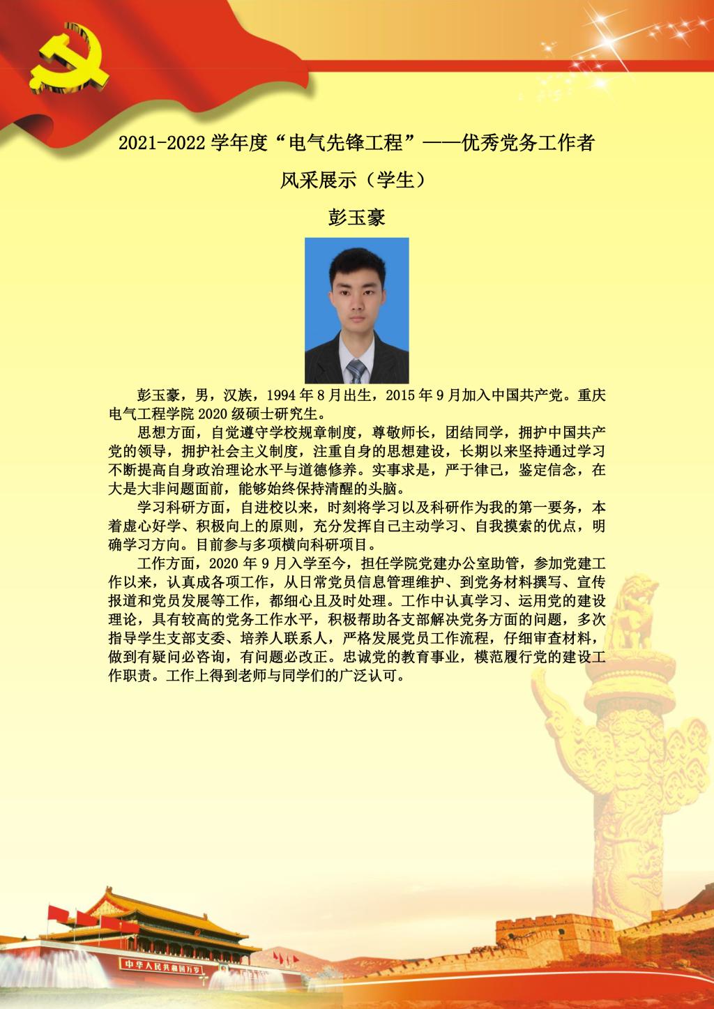 【党员风采】电力电子与电力传动硕士生一支部彭玉豪