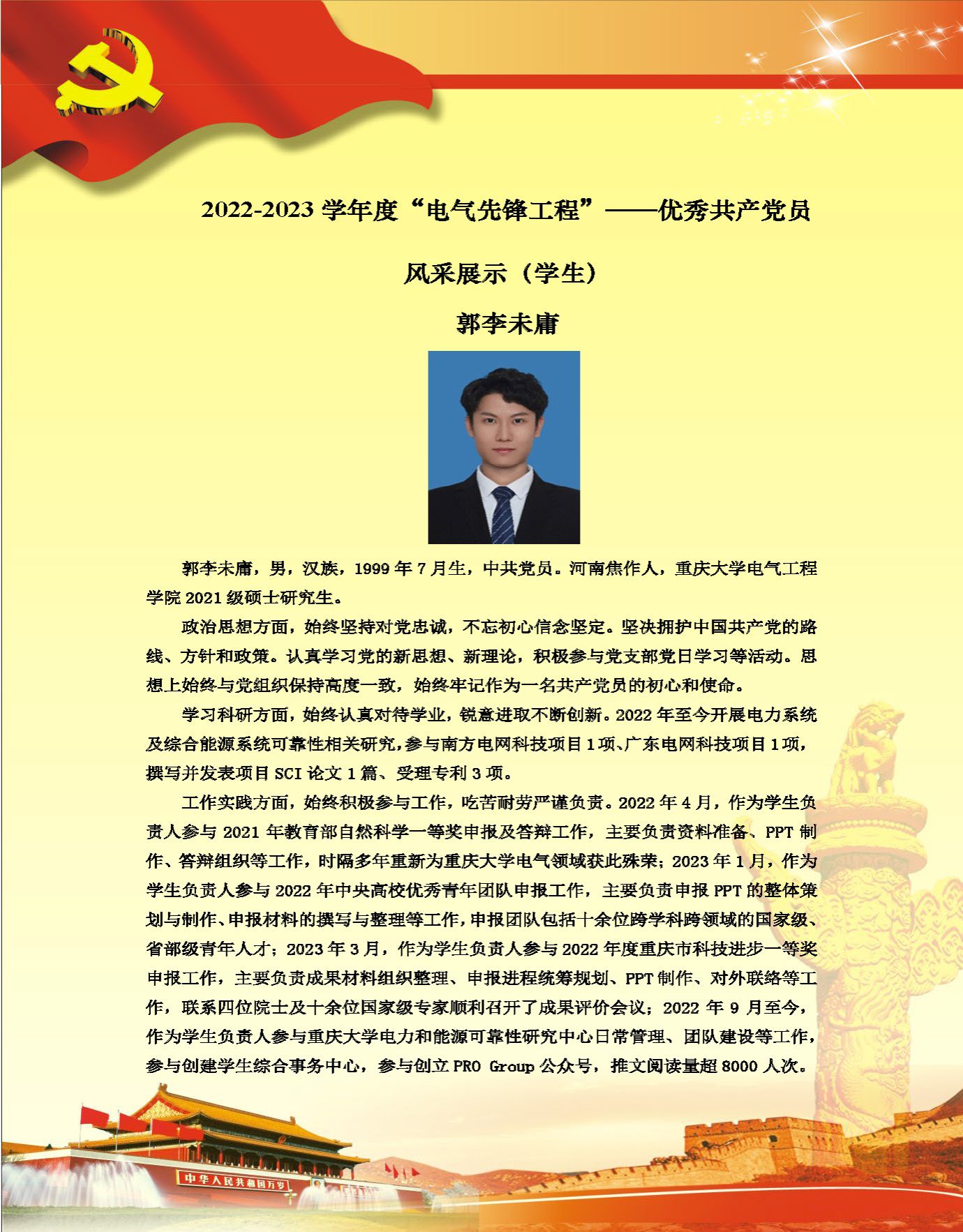 【党员风采】电力系统及其自动化系硕士生一支部郭李未庸