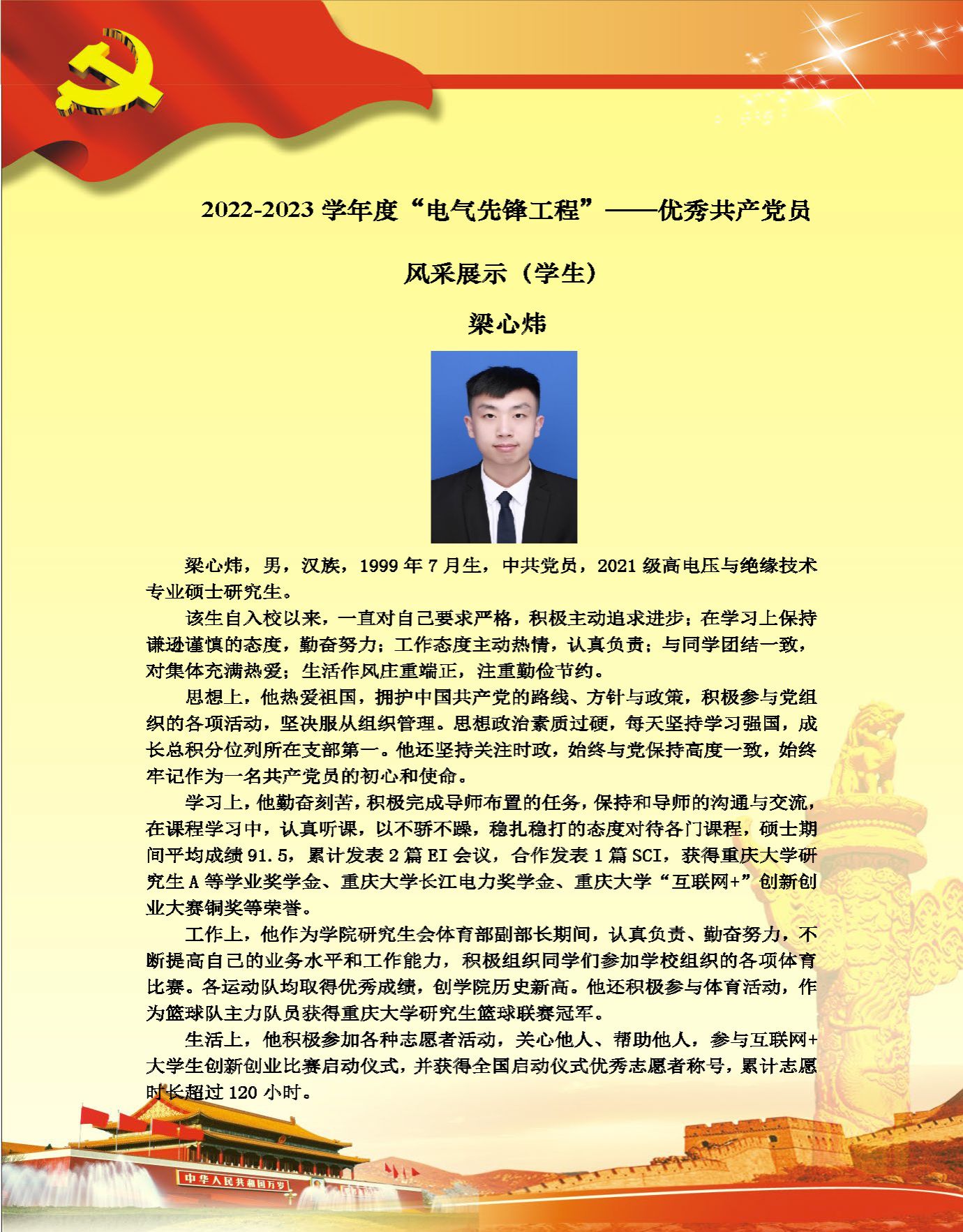 【党员风采】高电压与绝缘技术系二支部梁心炜