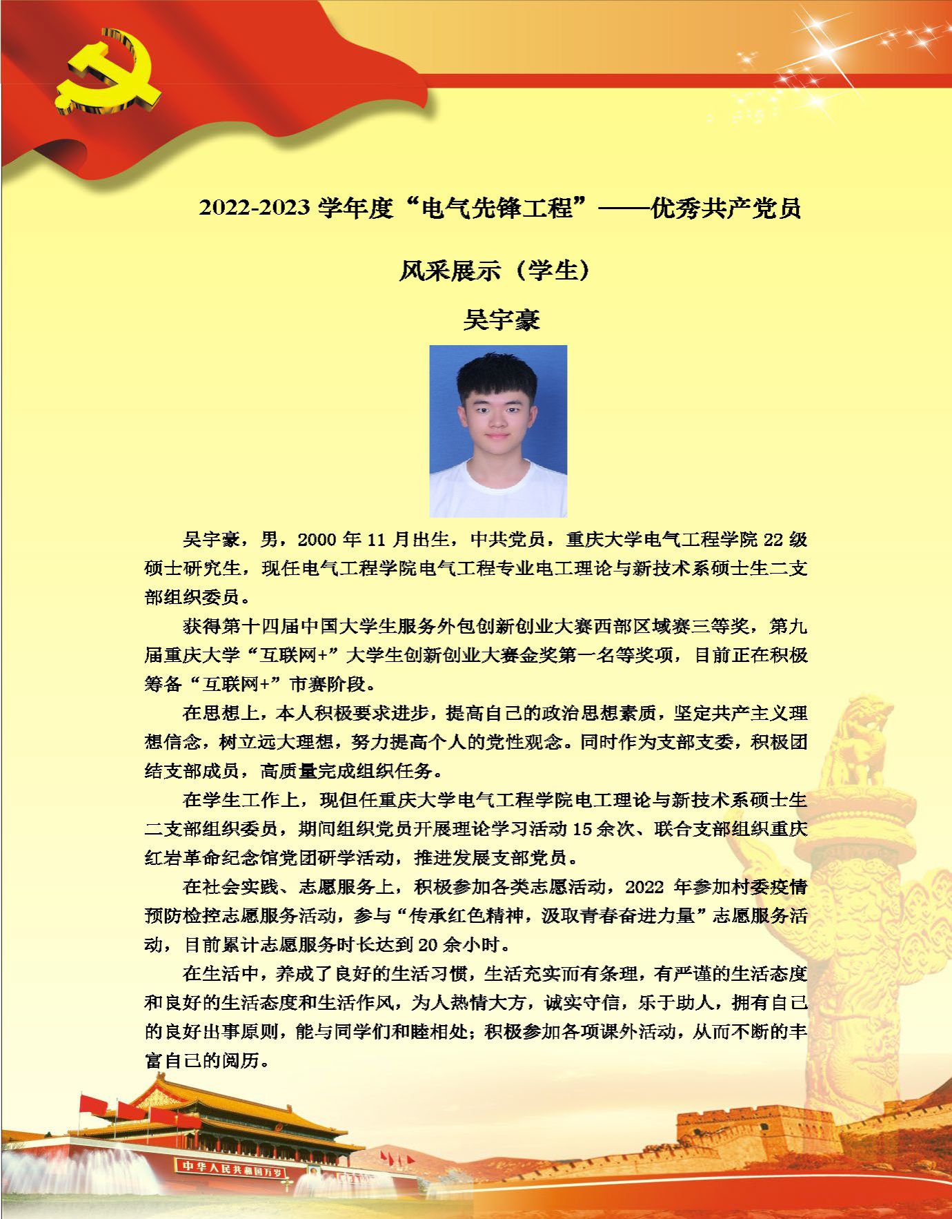 【党员风采】电工理论与新技术系硕士生二支部吴宇豪