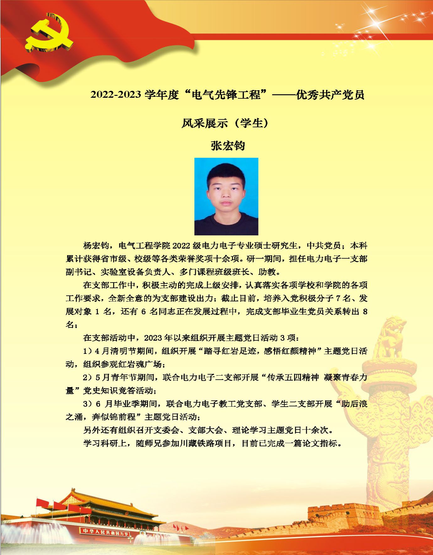 【党员风采】电力电子与电力传动系硕士生一支部张宏钧