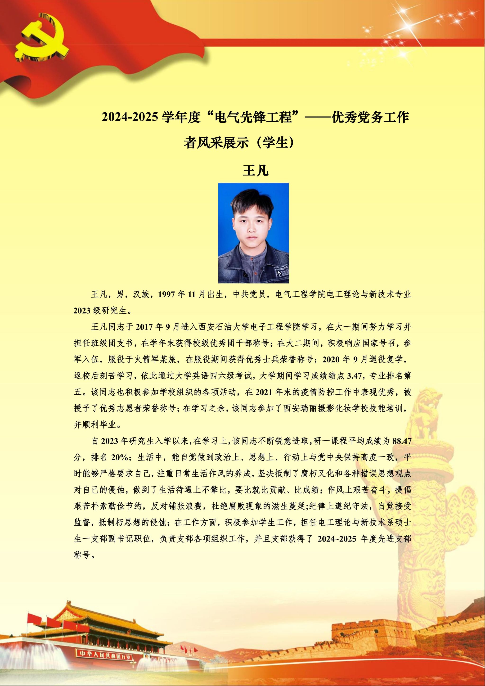 【党员风采】电工理论与新技术硕士生一支部王凡