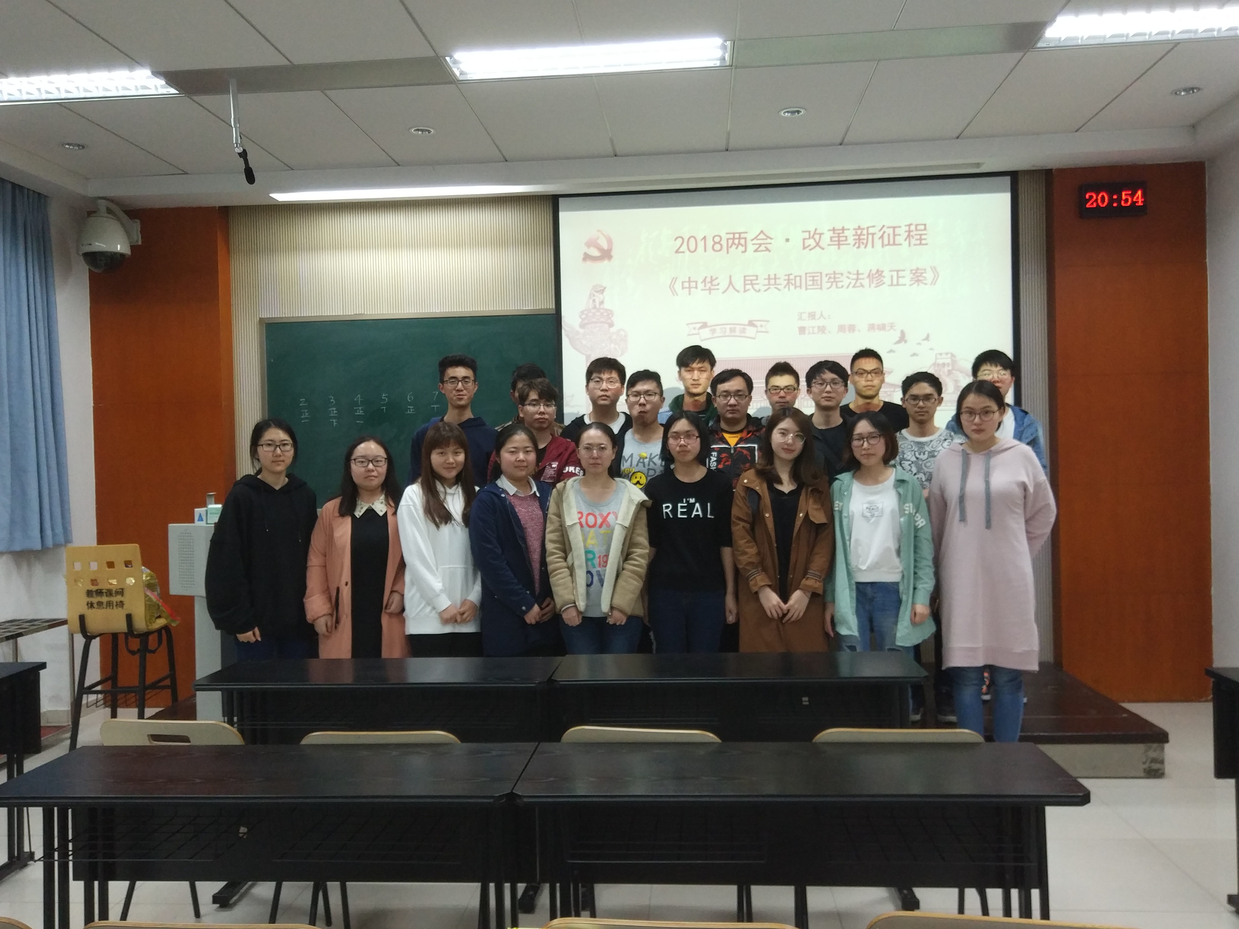 晚七点,本次组织生活会在A8101按时进行,全体党员按时出席。主讲人曹江陵首先为大家介绍了宪法的意义、修改要求和原则,强调了宪法在法律体系中的根本法地位和对建设国家的指导性意义。然后,支部成员学习了今年两会提出的宪法修正案,从具体条目的增补、删减,到专家人士的点评和解析。本次修正案的主要内容包括科学发展观、习近平新时代中国特色社会主义思想指导地位的确立、中国特色社会主义事业总体布局、全面依法治国等内容。期间,支部成员一起观看中国政法大学副校长李树忠等专家的评论,得到了很多的启示。