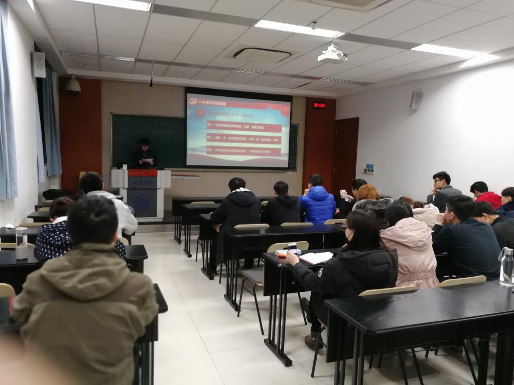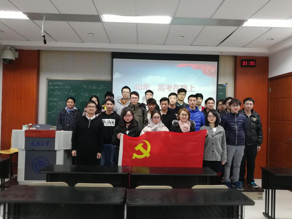 A区八教A8103教室开展了“40年,高考在路上”主题党组织生活会。四支部的全体成员参加了本次活动,戴太阳、黄刚担任会议主讲人。