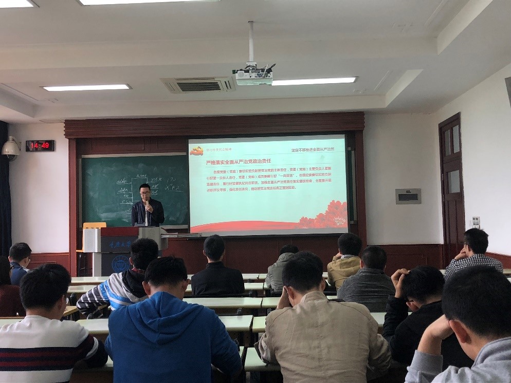 通过PPT展示,党员同志们认真学习报告精神:报告特别再次强调要“坚定不移推进全面从严治党”,全市各级党组织和广大党员干部肩负着3300万重庆人民的信任和重托,要始终走在实处、走在前列,用实际行动诠释信仰的力量,为人民谋利、为党旗添彩、为时代增辉!