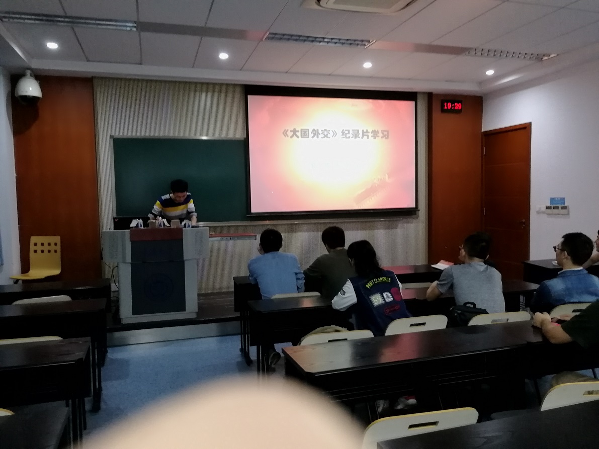最后,熊浩同志组织支部成员观看了《大国外交》纪录片,详细了解了我们党在新一届领导人上台之后,针对国内外的复杂局势,审时度势,如何与一个个国家建立外交的经历。影片观看之后,各位党员纷纷就各自印象最深刻的一点发表自己的感想,无一不在为自己祖国的强大而感到自豪!