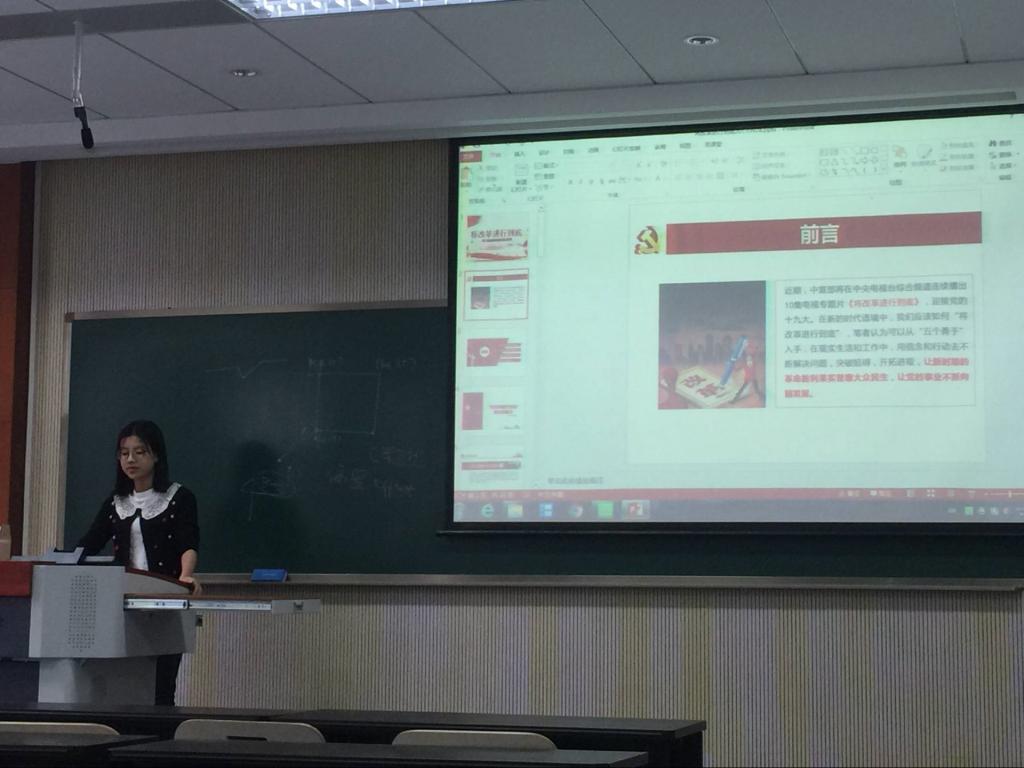 电力系统硕士生第一党支部在A区8教310室组织开展了学习了央视纪录片《将改革进行到底》的专题活动。支部组织委员郭林同志主持并开展了此次党组织生活,支部党员和入党积极分子都积极参与了此次活动。