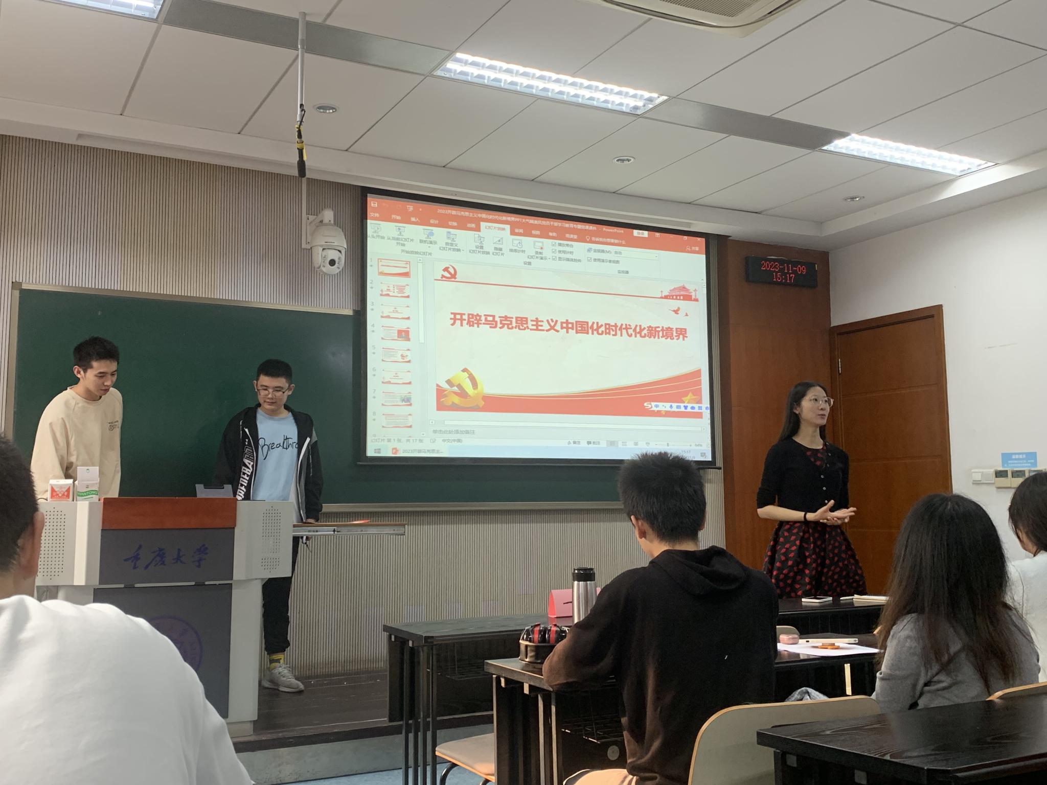 A区8302开展“开辟马克思主义中国化时代化新境界”主题党日活动,支部书记胡力方及本科生二支部全体党员参会。