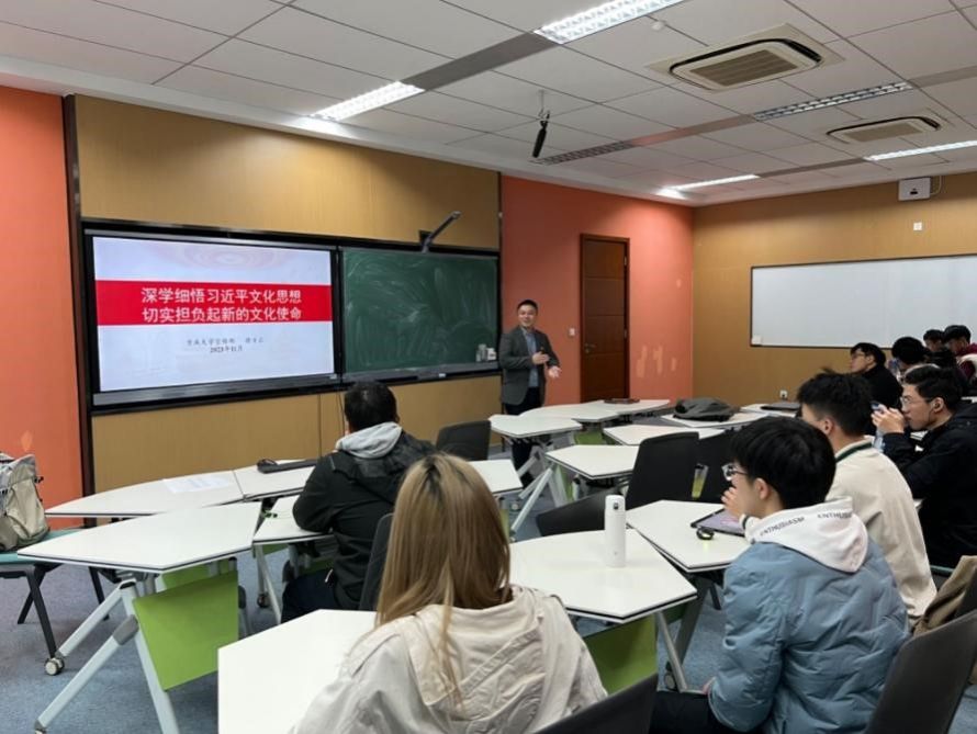 2023年11月16日19:00-21:00,以“深学细悟习近平文化思想,切实担负起新的文化使命”为主题,邀请校党委宣传部副部长徐方正深入解读习近平总书记在全国宣传思想文化工作会议中的重要讲话精神。徐方正指出,习近平文化思想是本次会议最重要的成果,身为“双一流”建设高校的学生,我们要认真学习贯彻习近平文化思想,切实担负起新的文化使命。本次培训让积极分子深入学习与感悟了习近平文化思想的重要意义,明确了自己肩负的文化使命。