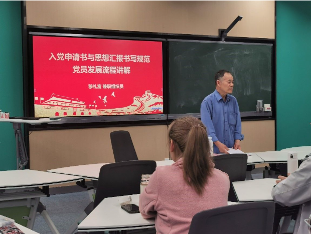 2023年10月28日14:30-16:30,以“入党申请书与思想汇报书写规范”为主题,邀请学院兼职组织员穆礼富阐述了发展党员工作的重要意义,并详细解读了从申请入党、入党积极分子的确定和培养教育、发展对象的确定和考察、预备党员的接收、预备党员的教育考察和转正五个阶段25个工作步骤。本次培训让积极分子了解了入党的基本流程,认识到了规范入党材料的重要性,端正了入党的动机。