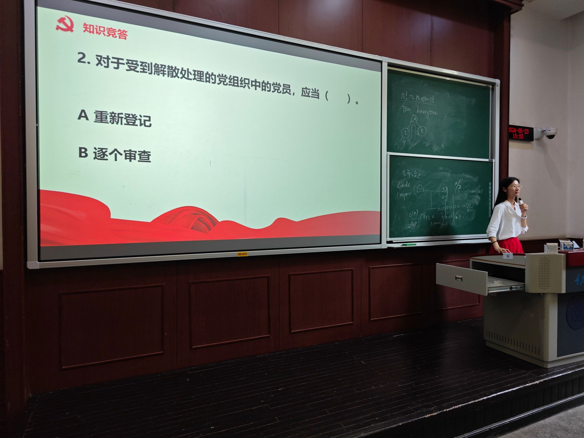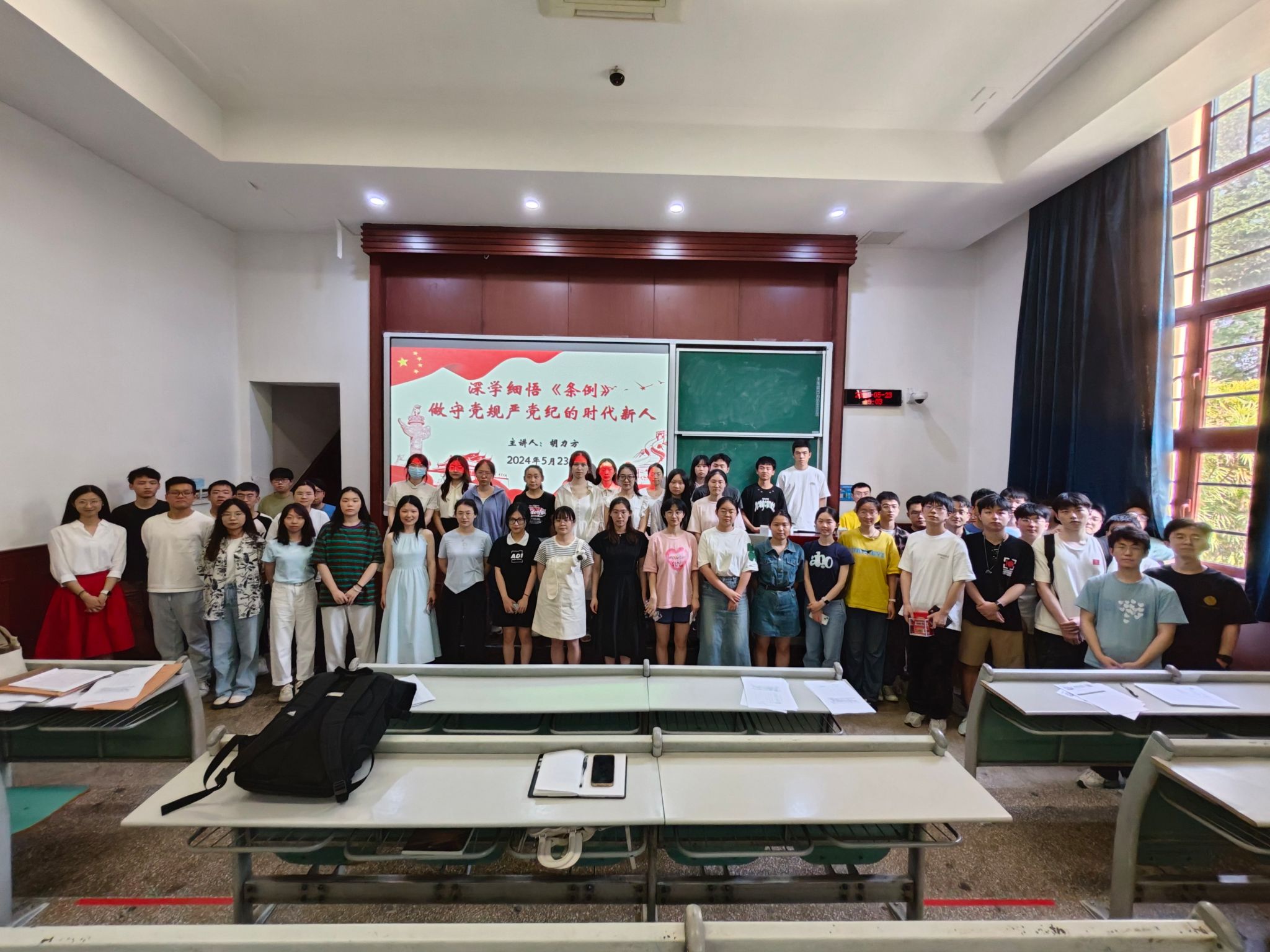 本科生二支部在A5102教室开展党纪学习教育专题党课,由支部书记胡力方讲授专题党课“深学细悟《条例》,做守党规严党纪的时代新人”。本科生二支部全体党员参会。
