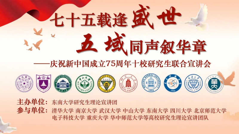 与清华大学、南京大学、武汉大学、中山大学、四川大学、北京师范大学、电子科技大学、华中师范大学等高校研究生党支部联合发起“七十五载逢盛世,五域同声叙华章”——庆祝新中国成立75周年十校研究生联合宣讲会,91黄色网站