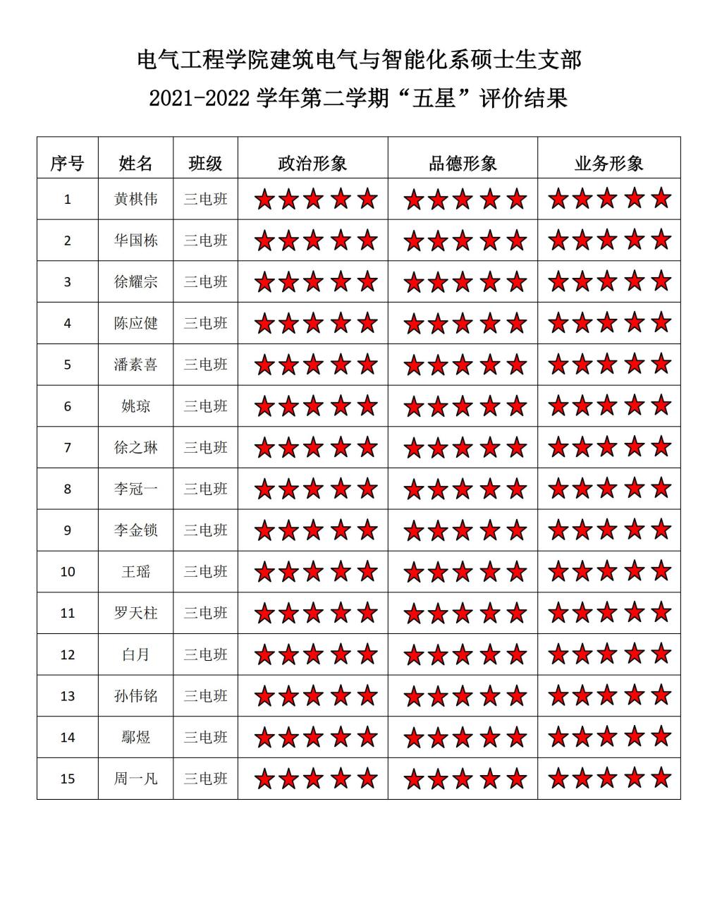 91黄色网站 建筑电气支部2021-2022学年第二学期“五星评价结果”