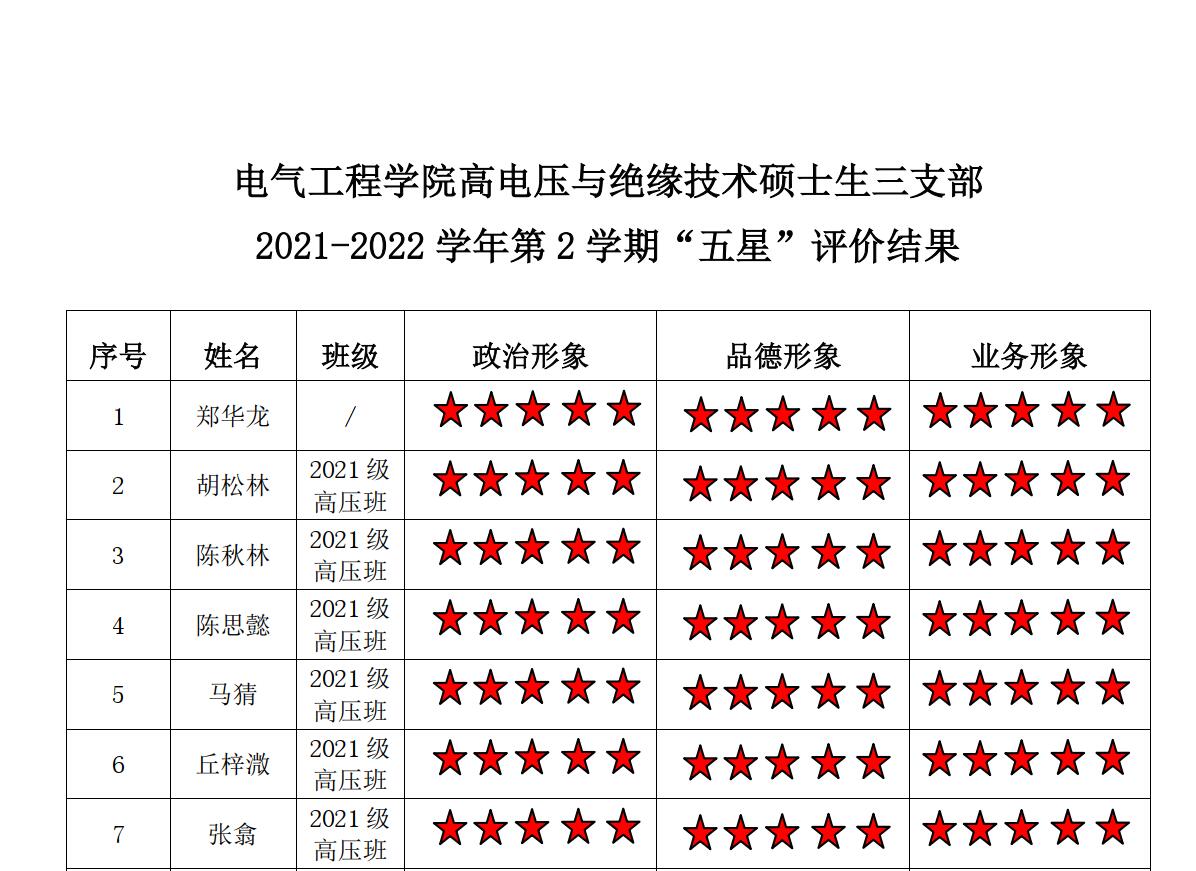 91黄色网站 高压二支部2021-2022学年第二学期“五星评价结果”