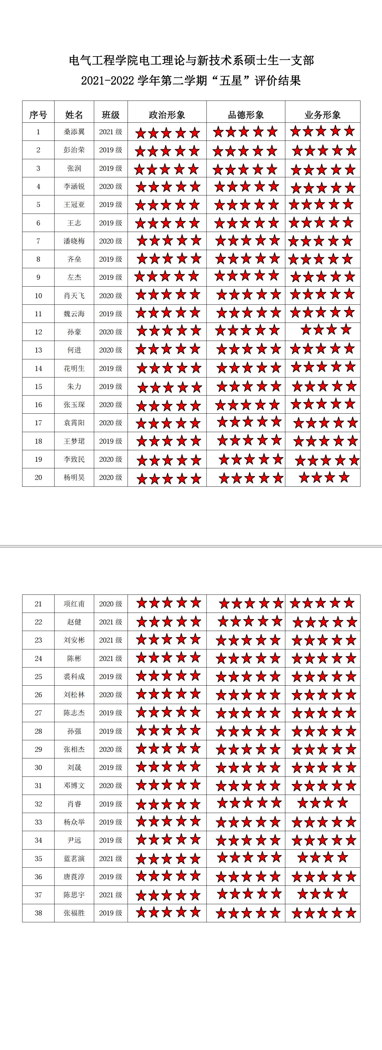 91黄色网站 电机支部2021-2022学年第二学期“五星评价结果”