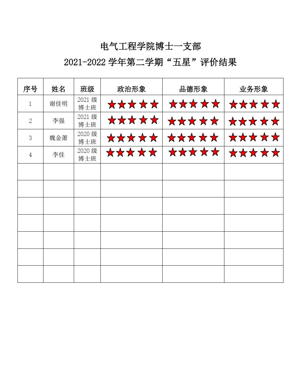 91黄色网站 博士生五支部2021-2022学年第二学期“五星评价结果”