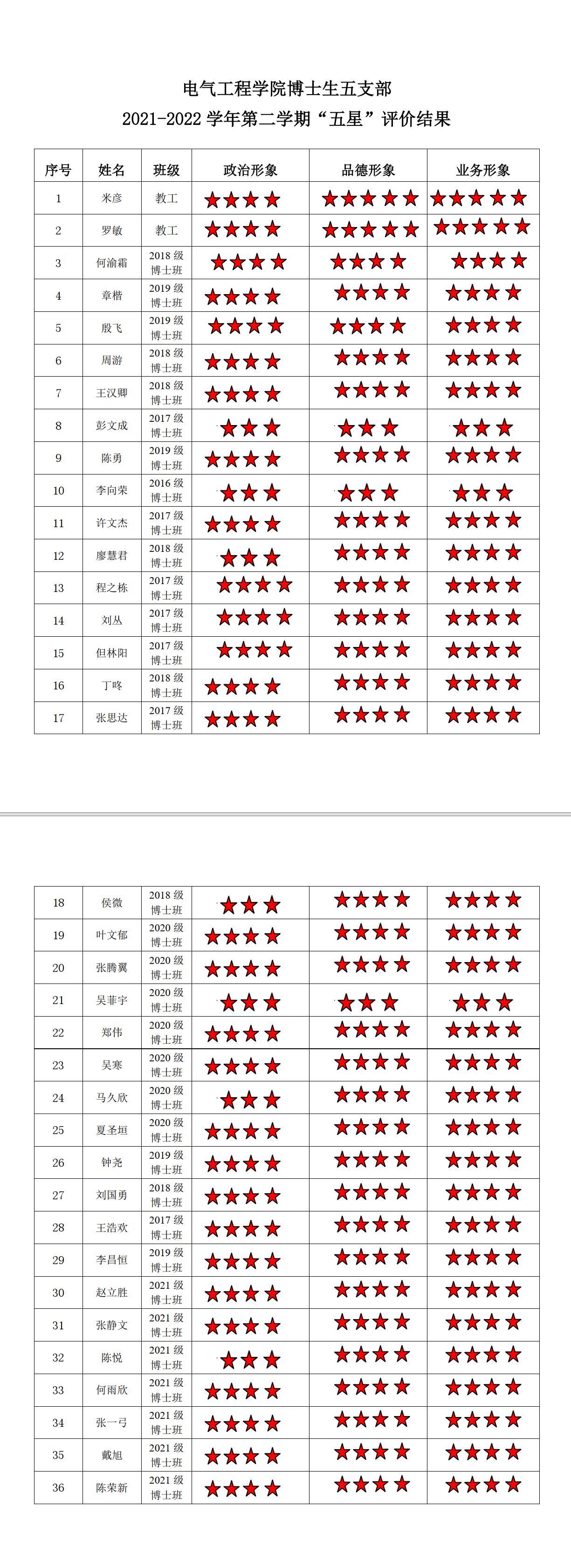 91黄色网站 博士生四支部2021-2022学年第二学期“五星评价结果”