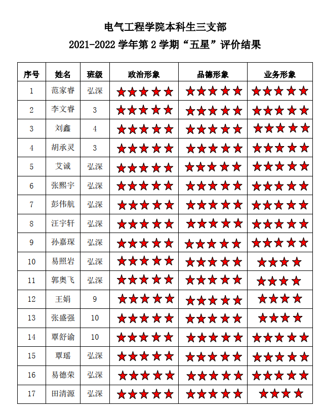 91黄色网站 本科生三支部2021-2022学年第二学期“五星”评价结果