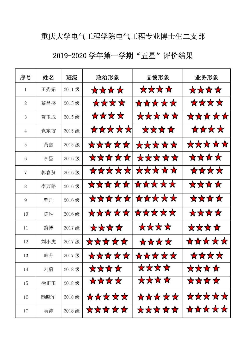 91黄色网站 博士二支部2019-2020学年第1学期“五星”评价结果