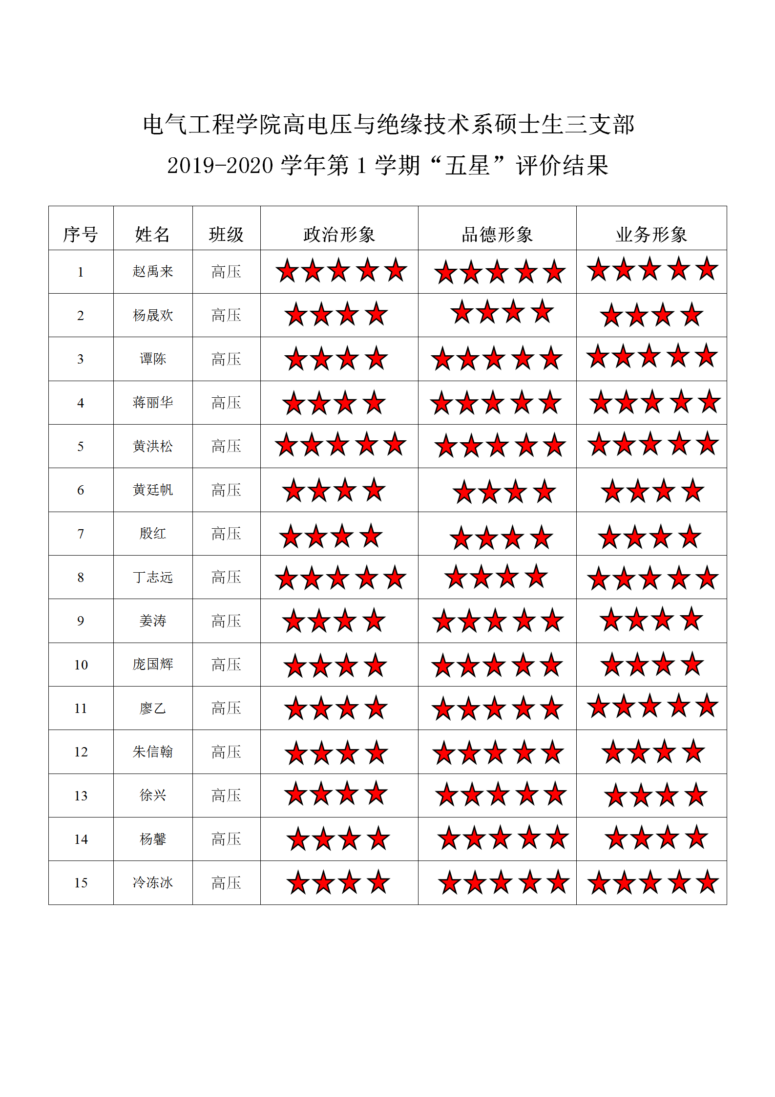 91黄色网站 高电压与绝缘技术系硕士第二支部 2019-2020学年第1学期“五星”评价结果