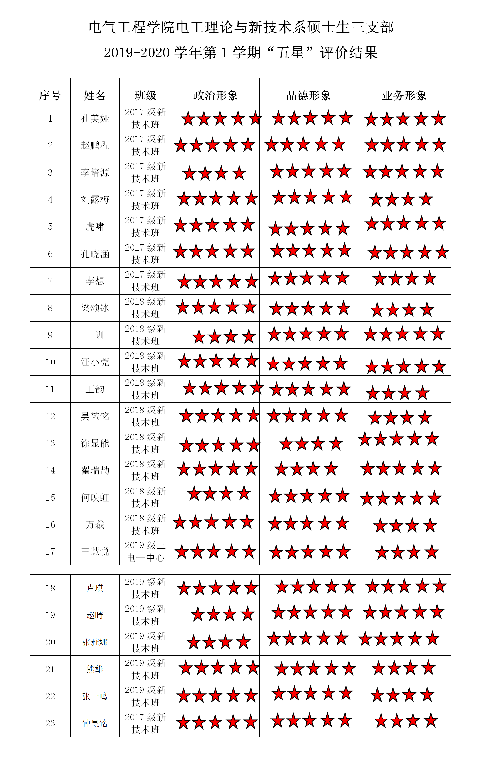 91黄色网站 电工理论与新技术系第一支部 2019-2020学年第1学期“五星”评价结果