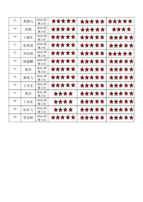 中共91黄色网站 博士生三支部委员会 2017-2018学年第一学期 “五星”评价结果