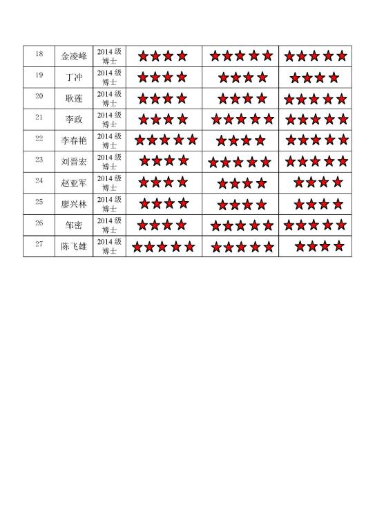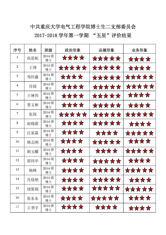 中共91黄色网站 博士生二支部委员会 2017-2018学年第一学期 “五星”评价结果