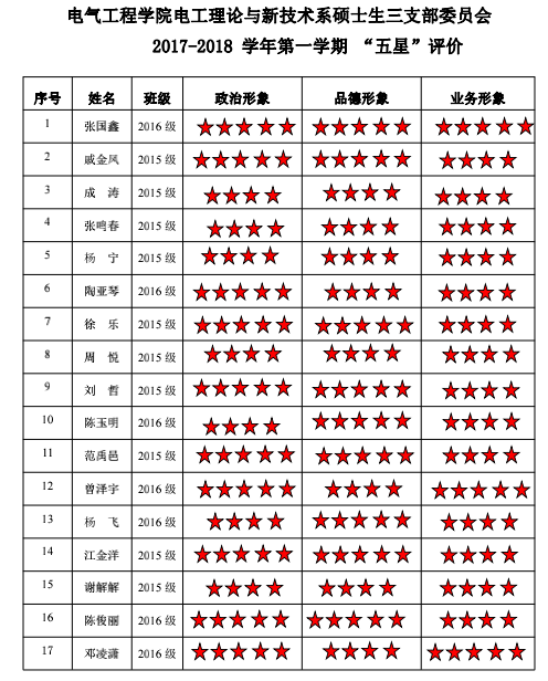 中共91黄色网站 电工理论与新技术系硕士生三支部委员会2017-2018学年 “五星”评价结果
