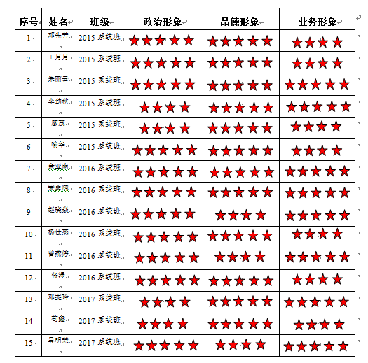 中共91黄色网站 电机与电器系硕士生支部委员会2017-2018学年第一学期 “五星”评价结果