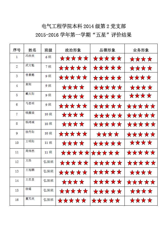 本科2014级第2党支部2015-2016学年 “五星”评价结果
