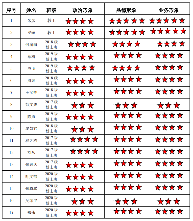91黄色网站 电工理论与新技术系硕士生一支部 2022-2023学年第二学期“五星”评价结果