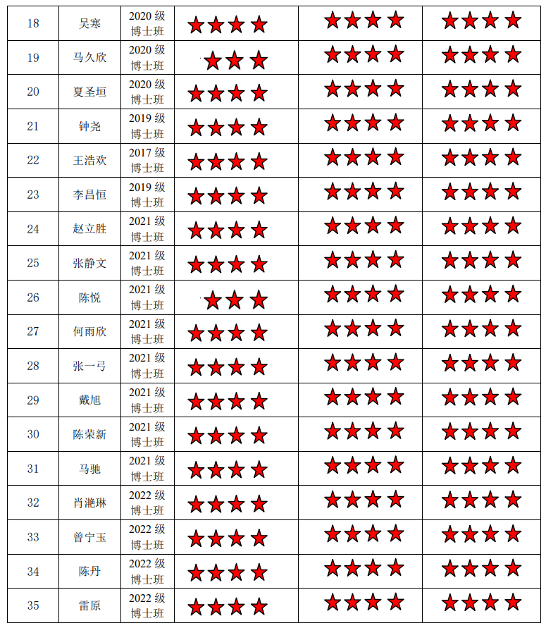 91黄色网站 博士生五支部 2022-2023学年第二学期“五星”评价结果