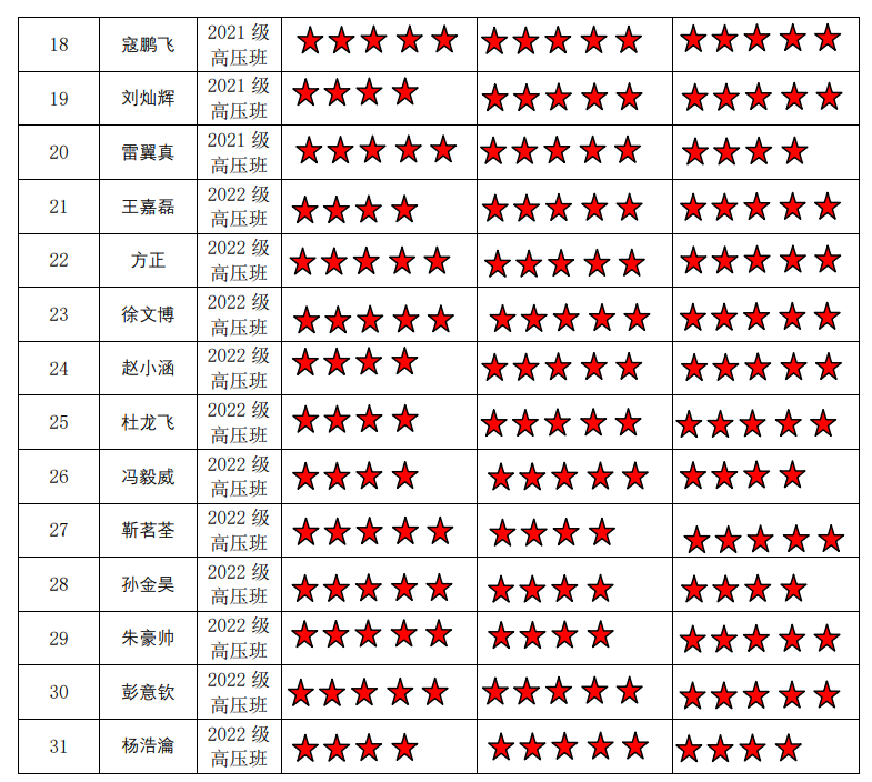 91黄色网站 高电压与绝缘技术硕士生四支部 2022-2023学年第二学期“五星”评价结果