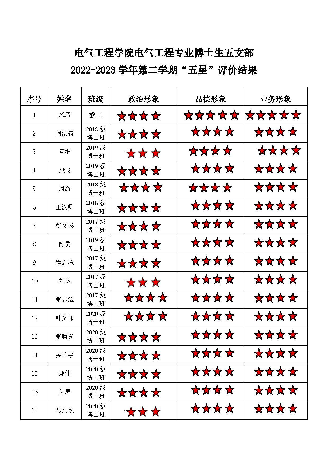 91黄色网站 电工一支部 2022-2023学年第二学期“五星”评价结果