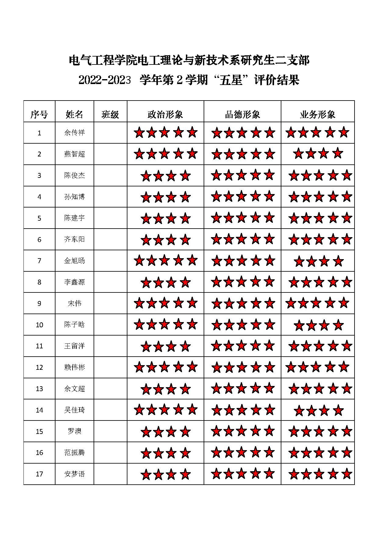 91黄色网站 电工二支部 2022-2023学年第二学期“五星”评价结果