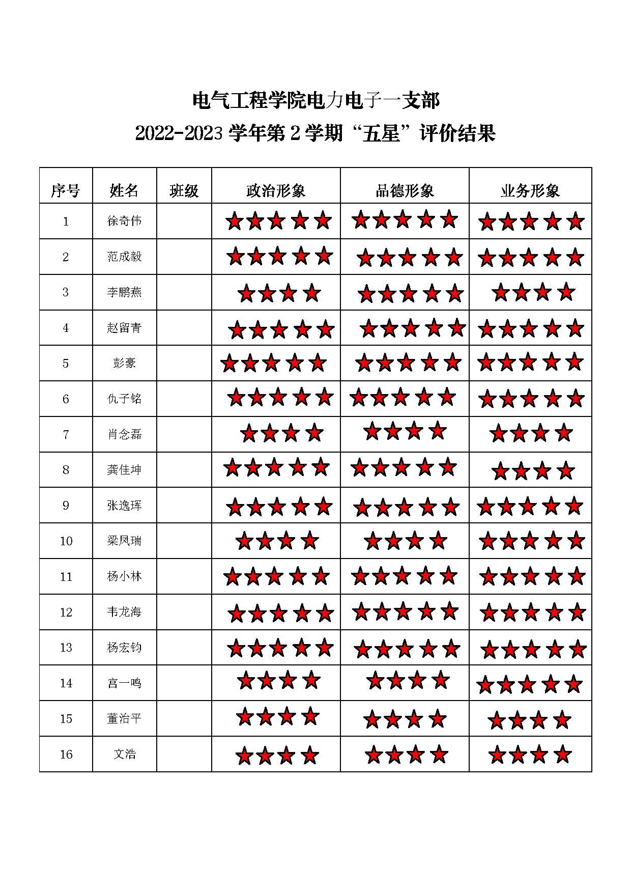 91黄色网站 电力电子二支部 2022-2023学年第二学期“五星”评价结果