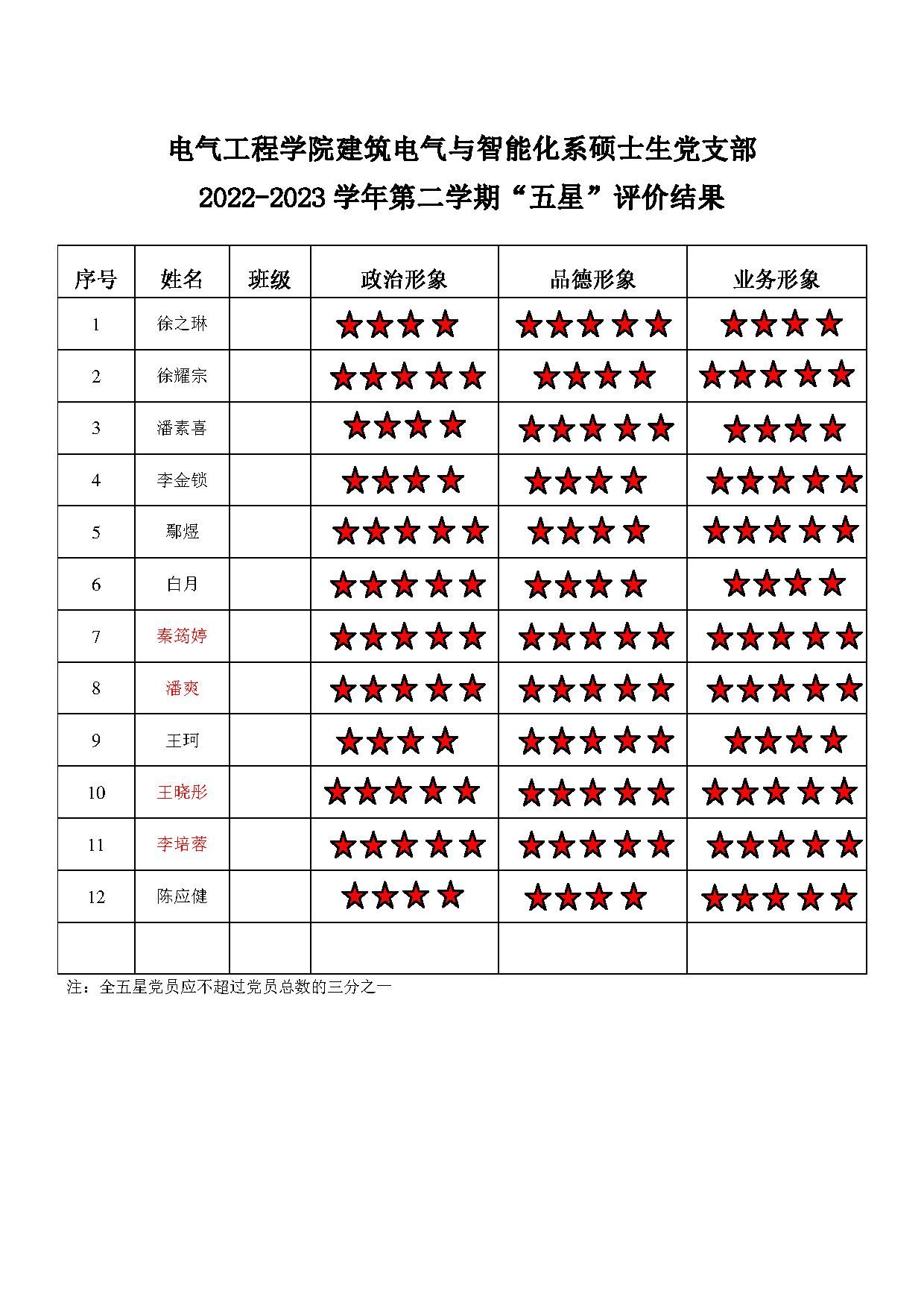 91黄色网站 建筑电气支部 2022-2023学年第二学期“五星”评价结果