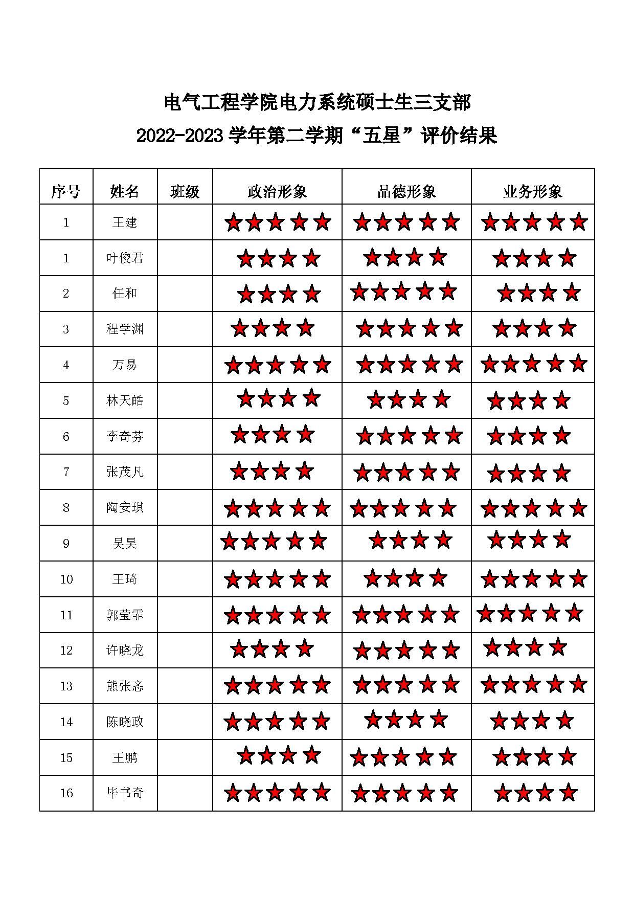 91黄色网站 高压一支部 2022-2023学年第二学期“五星”评价结果