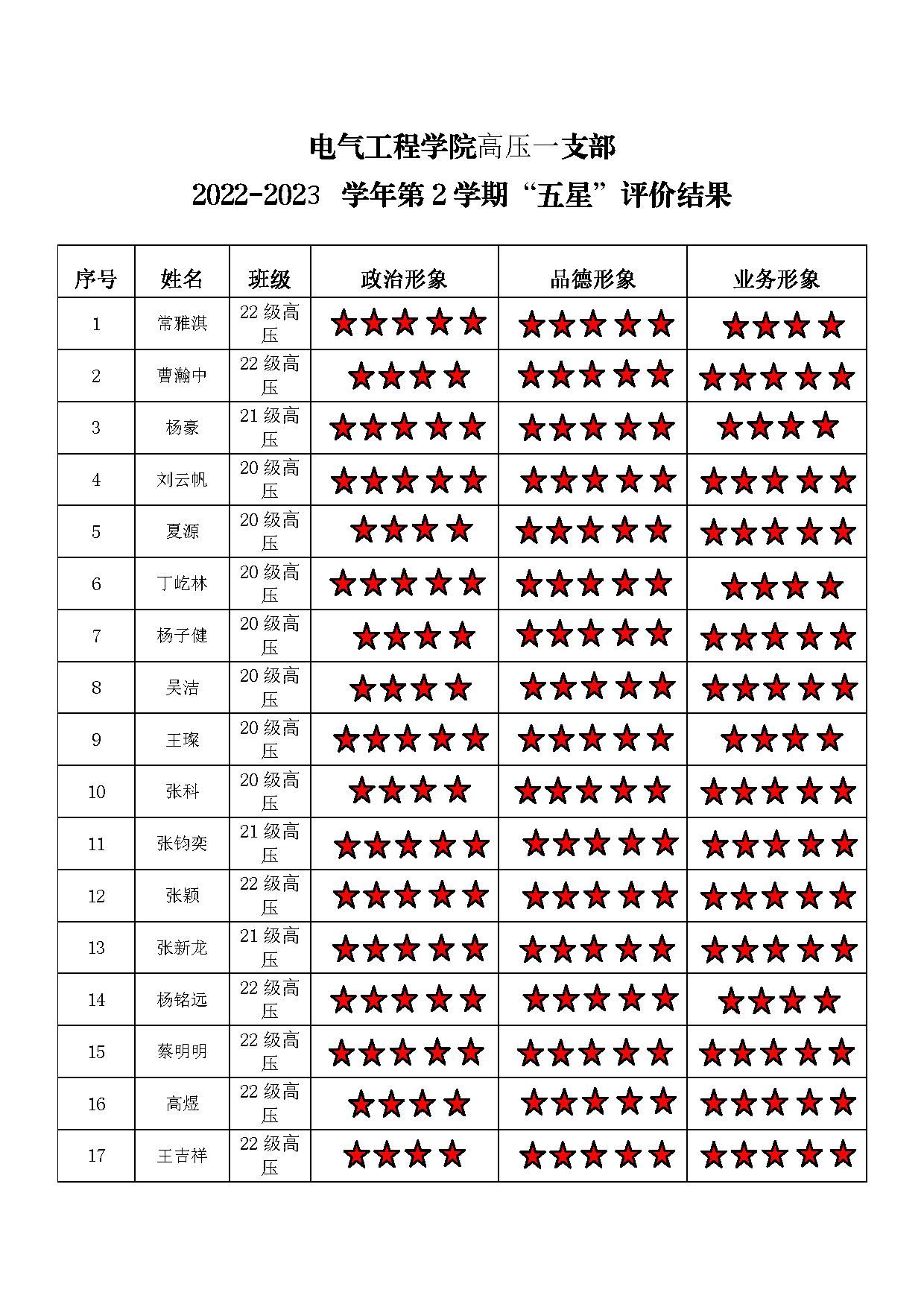 91黄色网站 高压二支部 2022-2023学年第二学期“五星”评价结果