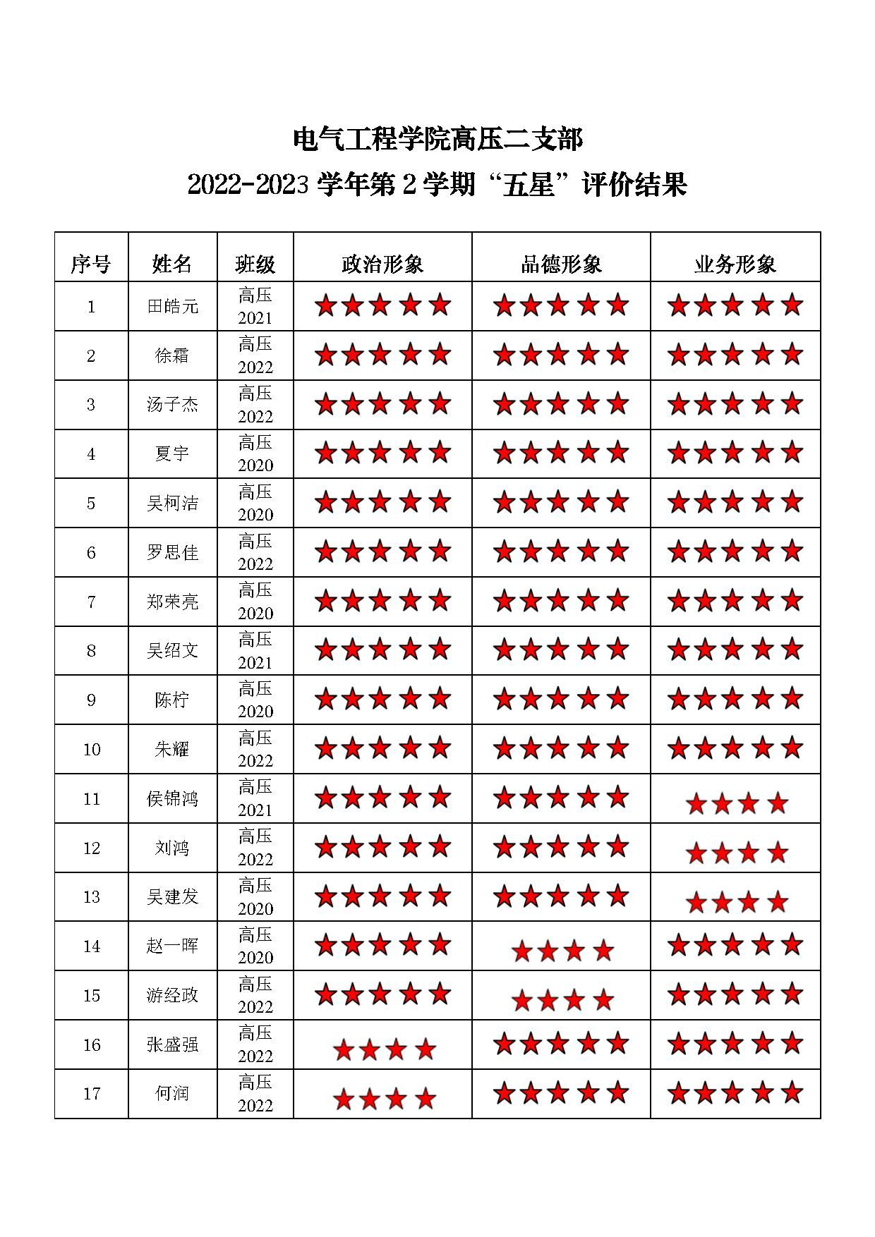 91黄色网站 高压二支部 2022-2023学年第二学期“五星”评价结果