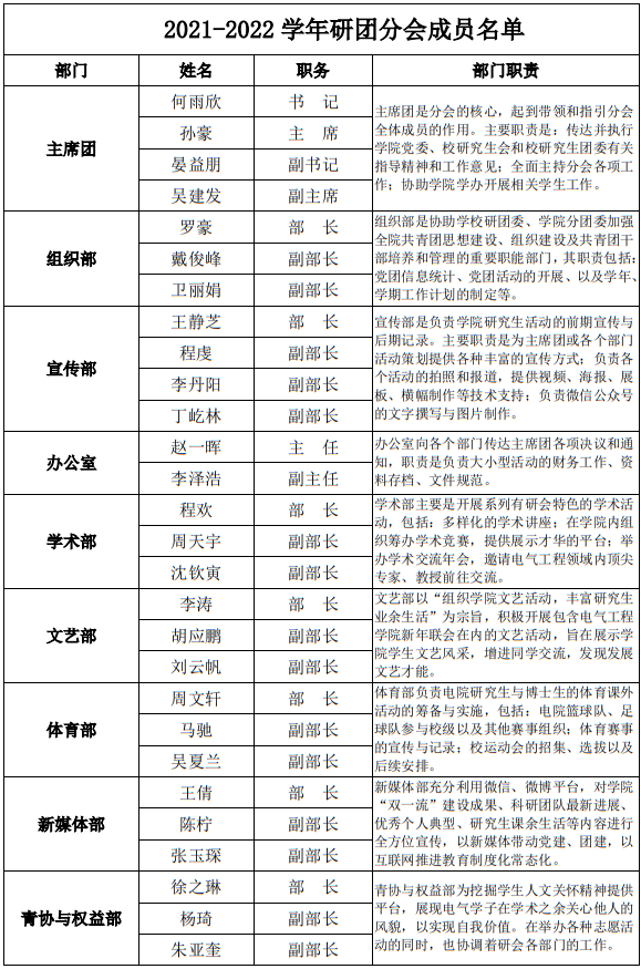 91黄色网站 2021-2022学年研团分会成员组成